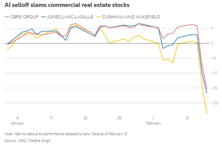 このところ、世界の株式市場でAI(人工知能)への不安がきっかけとなる大規模な売りが発生しています。とくに商業不動産業界では、株価が急落し、数十億ドル規模の含み損失が出る事態になりました。