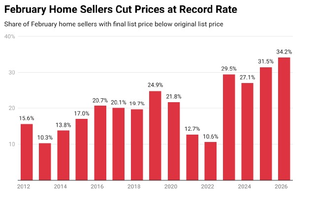 2026年2月、アメリカでは住宅を売りに出している人の3分の1以上が価格を引き下げたそうです。これは2月としてはこの10年以上で最も高い水準とのことです。